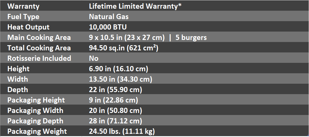 - Provides extra space to create sauces and side dishes while using the main BBQ Grill