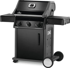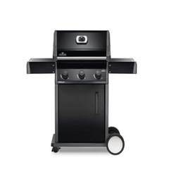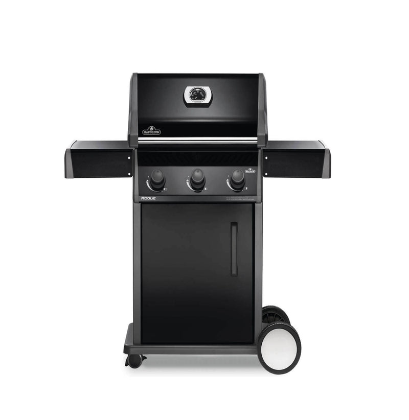 Napoleon’s Rogue® 425 Propane Gas Grill is a premium, yet affordable BBQ marvel. With three burners that light instantly and effortless temperature control, it ensures perfect grilling or roasting. Its cast iron cooking grids deliver even heating and exquisite sear marks, while stainless steel sear plates help reduce flareups. Durable black porcelain enamel and powder-coated surfaces resist weather and fingerprints. Foldable side shelves enhance storage versatility. Ignite instantly with battery-free ignition. Move effortlessly with Locking Caster Wheels. Enjoy exceptional grilling in any space. Includes porcelain coated griddle insert.